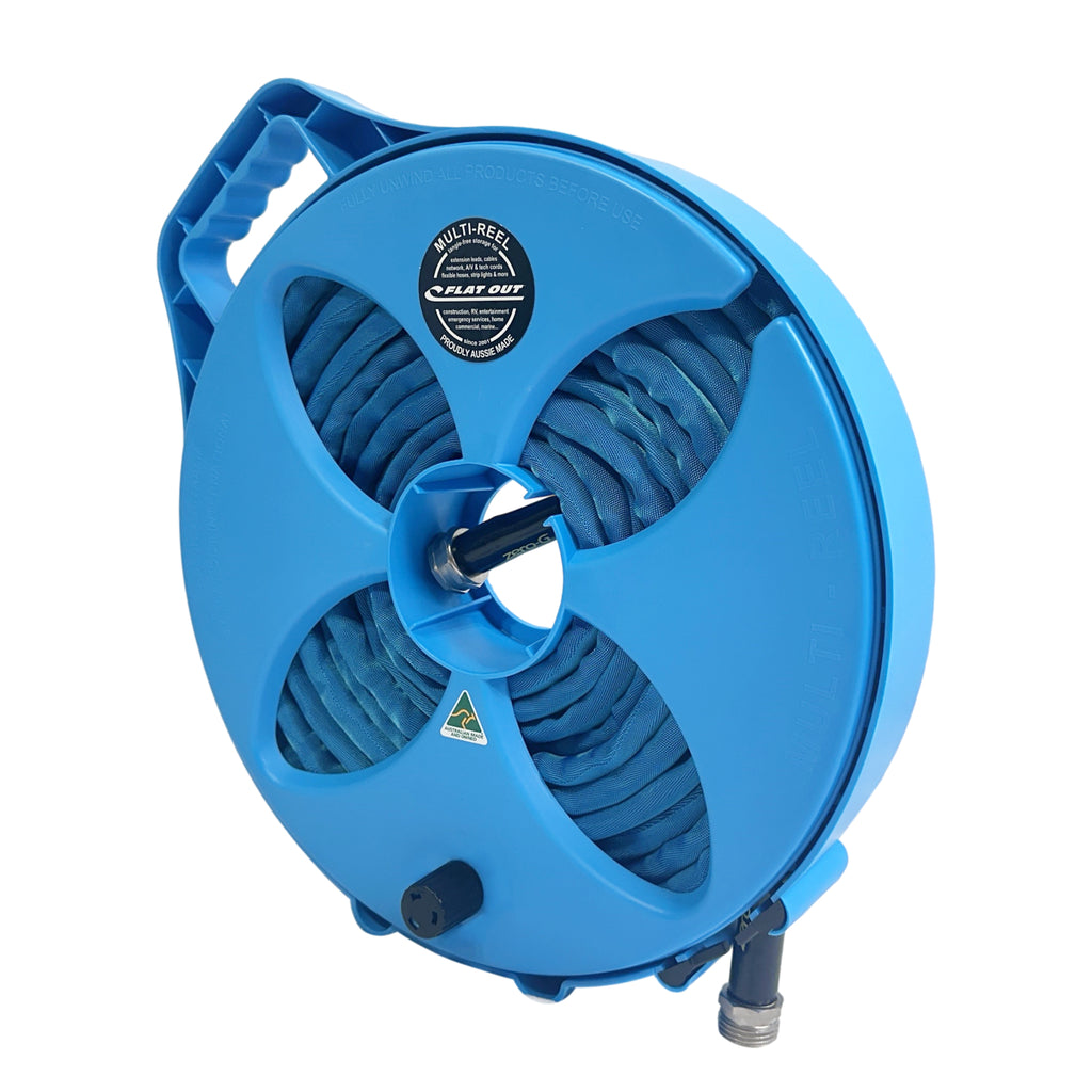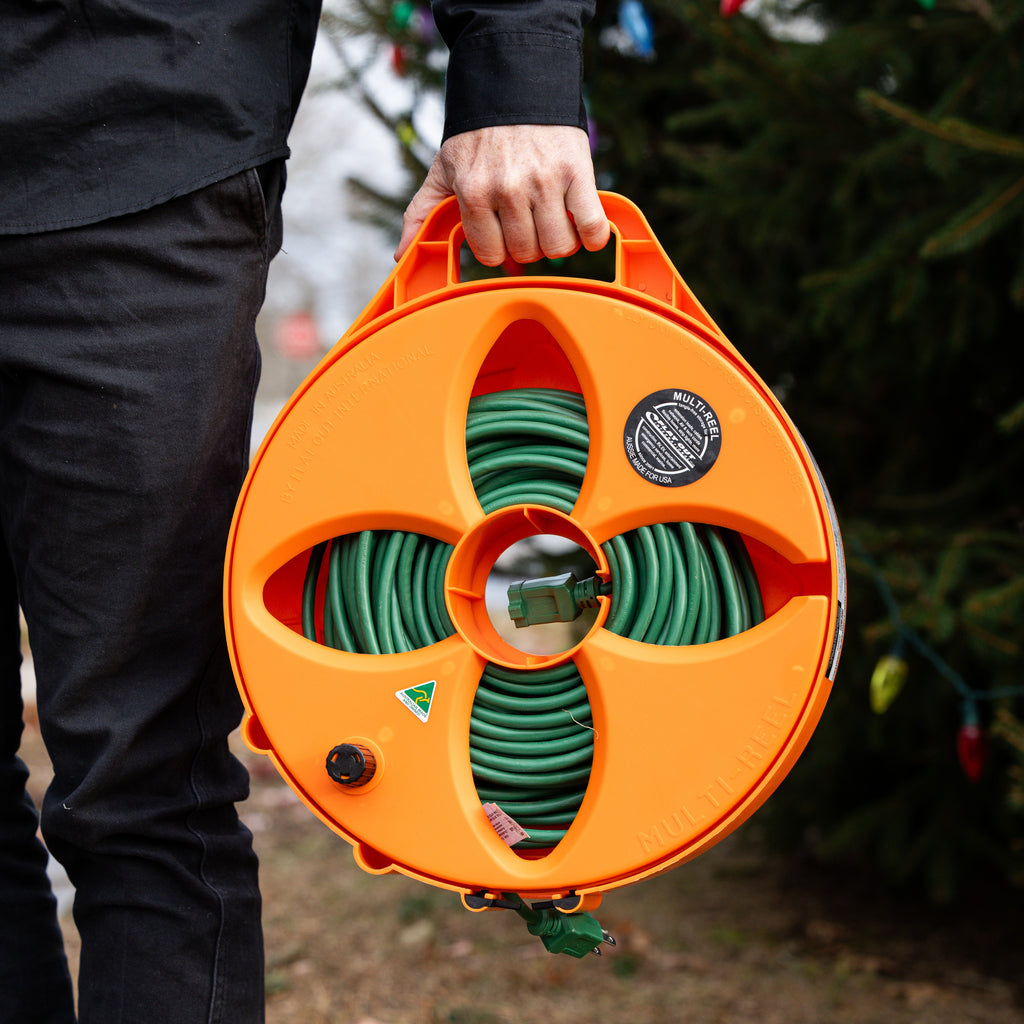 Meet the beast of organization: the Original Multi-Reel. This is our biggest and baddest cable/ hose-reel yet—built to handle over 100 feet of heavy-duty extension cord or 50 feet of flexible hose and pretty much anything else you can roll, wrap, or wrestle into place.